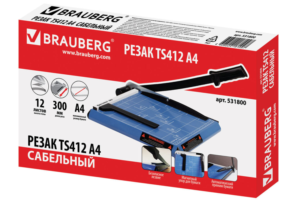 An indispensable thing for the office, suitable for cutting paper, cardboard, film and tracing paper. The maximum cutting thickness is 12 sheets of 80 g/m2 paper. Cut length - 30 cm.