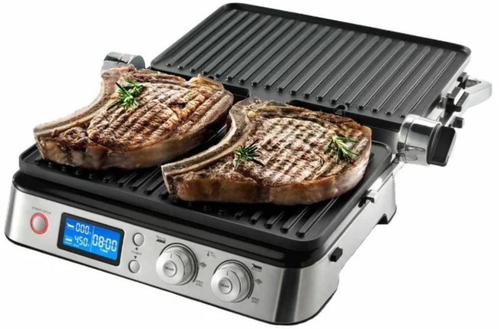 The model has 9 cooking programs, and also independently regulates the temperature depending on the product, its thickness and size. With such a device, you will no longer need pans - why, if the grill can cook a dish without your participation.