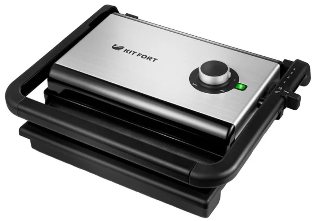 A 2000 W grill with a stylish design that will fit into a modern kitchen interior. The grill has a corrugated surface and has a non-stick coating. There is a compartment for fat, a temperature controller and heating sensors. The grill is also equipped with an auto-off function in case of overheating. The dimensions of the working surface are 29.7x23.5 cm. The grill can also be used as an open grill, but it has one drawback - the plates in it are not removed.