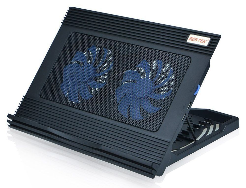 Today, there are many positive recommendations for this model of the cooling system, which allows us to put it in the top three. The model is made of aluminum, which gives it strength with the declared lightness, and also provides the necessary thermal conductivity. Due to the presence of 2 coolers, it is able to perform its functions even when playing games. Thanks to a wide range of leg adjustments, which are fixed with side holders, your work will be comfortable and will allow you not to be distracted by problems that arise. It is this purchase that will allow you to find a good addition to your laptop. Its cost is 1900 rubles.