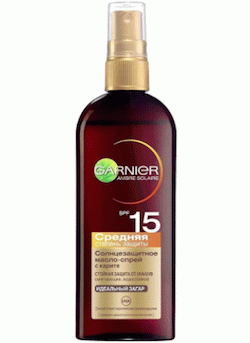Garnier Tanning Oil contains little shea, which attracts and scatters the sun's rays. An even, beautiful tan appears. The product has a moisturizing effect. The oil can also be used by representatives of fair skin.