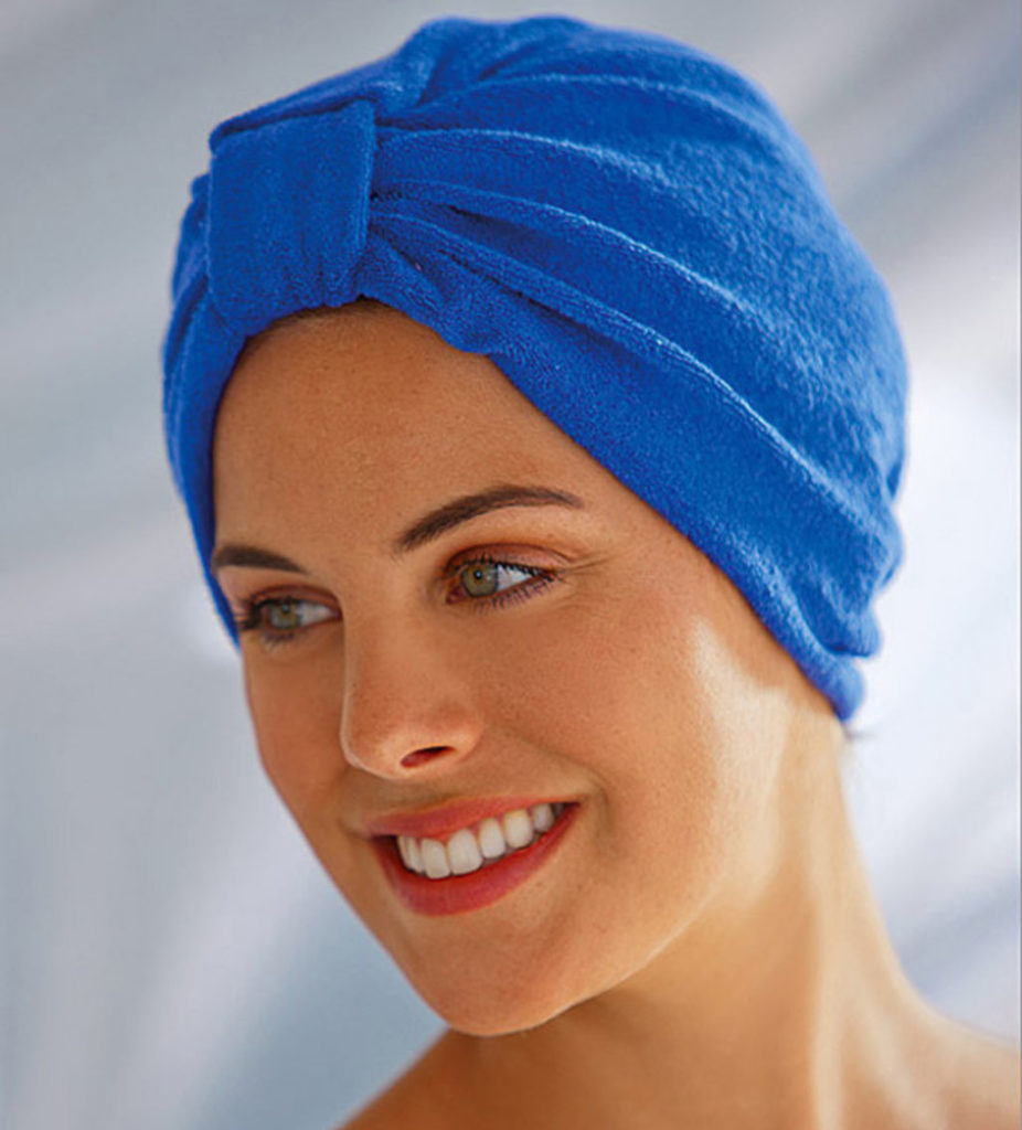 Indicado para cabellos secos o rizados con tendencia a la rotura. Absorbe perfectamente el agua y no daña los rizos. Puede comprar un turbante regular o especial, que se fija de forma segura en la cabeza. Por cierto, las gorras de microfibra se pueden usar como aislamiento adicional al hacer mascarillas para el cabello.