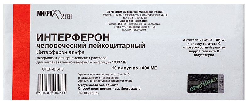 El medicamento se produce en forma de ampollas con una sustancia en polvo. Se diluye con agua y se instila en la nariz. También use el líquido resultante para inhalar. Durante los resfriados, se recomienda usar Interferon regularmente para protegerse de infecciones. A veces, este medicamento se recomienda para el tratamiento de bebés y mujeres embarazadas.
