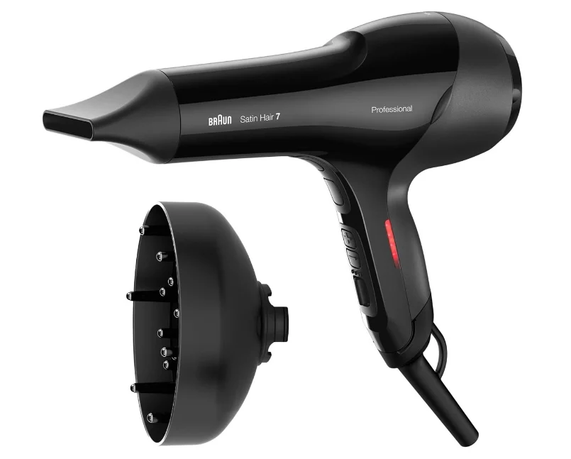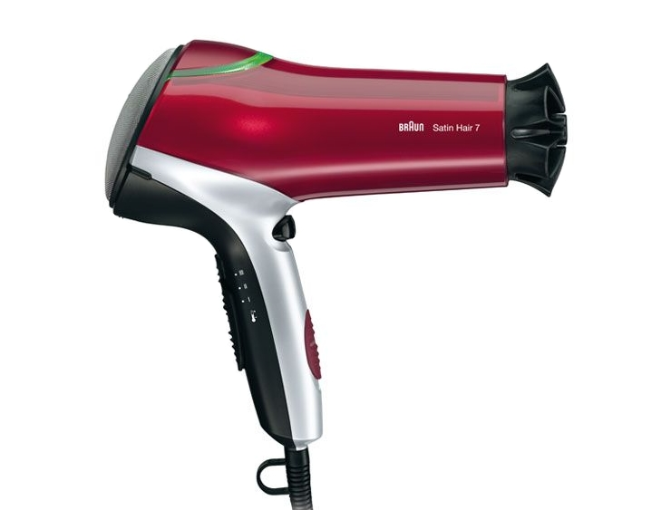Braun HD 780 Satin Hair 7 es cómodo y fácil de usar, no se resbala ni se cae de las manos.La función de distribución uniforme del calor se logra gracias al revestimiento de turmalina del elemento calefactor cerámico. El suministro de aire frío evita el sobrecalentamiento y garantiza un secado rápido y suave del cabello.