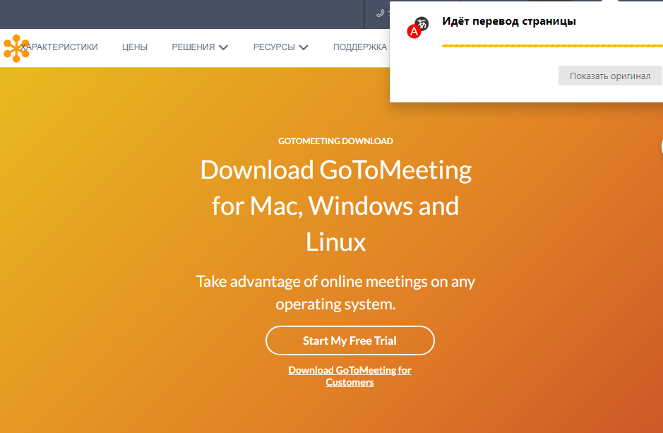 Introducción a la plataforma GoToMeeting en línea, traducción automática de la página al ruso