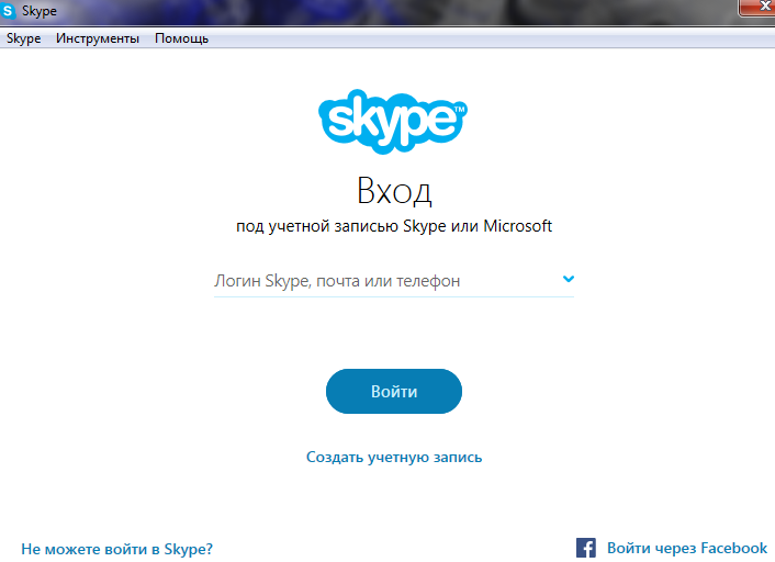 Interfaz de la plataforma Skype, ventana de entrada después de la instalación en la PC