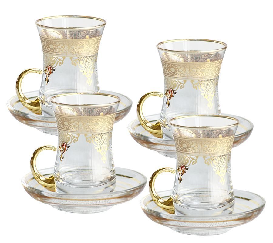 El juego tiene pares de té (vasos y platillos), muy adecuados para un regalo, vendidos en un hermoso paquete. Material: vidrio. Hecho en china. Precio: 1260 rublos.