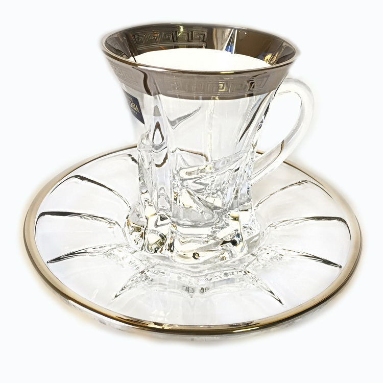 6 tazas con asas (handle) para facilitar su uso. Marca: Bohemia Crystal (Cristal de Bohemia), República Checa. Un fabricante confiable y probado utiliza solo equipos innovadores, lo que le permite obtener productos de alta calidad y reducir los costos. Precio: 4808 rublos.