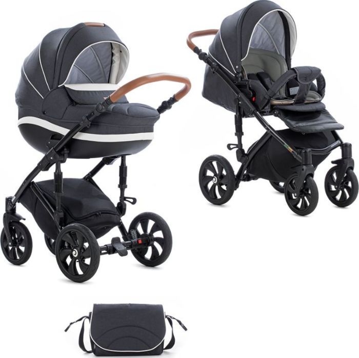 Adamex Barletta 2 en 1 es un cochecito modular de la marca polaca, compuesto también por dos bloques desmontables intercambiables (una silla de paseo y una cuna). Cumple totalmente con las normas europeas. La cuna es bastante profunda, con laterales altos, a diferencia de muchos otros modelos, tiene un elemento de sujeción adicional para el mal tiempo y una visera. Interior de algodón, colchón fabricado en tejido impermeable.Hay una cubierta aislante para la cuna y el andador. Las ruedas delanteras giran, hay un bloqueo. Freno conveniente. Mecanismo de plegado - libro. Respaldo regulable, piecera, capota desmontable y barra parachoques. El kit incluye 2 bloques, 2 fundas, una malla, un manguito-manoplas para el invierno, un colchón, un protector de lluvia, 2 bolsas, un portavasos, un protector de lluvia. Peso - 14 kg, ancho del chasis trasero - 61 cm Tapicería de tela.