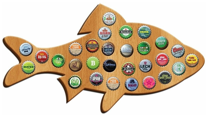 Otro representante de las alcancías de la compañía Presente, que, según los compradores, tiene derecho a ser llamado uno de los mejores.La popularidad del modelo se debe a su forma inusual en forma de crucian, por lo que es perfecto para aquellos que aman la pesca y disfrutan de una bebida embriagadora de vez en cuando. El aplique plano está fabricado en madera natural y tiene 42 agujeros. Montado en la pared con dos perchas de metal, que se proporcionan en el kit.