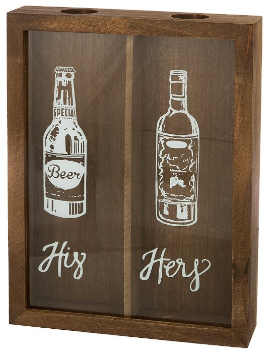 En la descripción del modelo Lefard 124-100, puede ver que este último está hecho de astillas de madera pegadas con sustancias químicamente seguras: lignina y parafina. Tiene forma de rectángulo y está dividido en dos compartimentos en el medio: el primero es para tapas de cerveza y el segundo es para corchos de vino. El vidrio se coloca al frente para que el usuario pueda ver el grado de plenitud. Además, se dibujan dos botellas en la parte frontal, debajo de la cerveza y debajo del vino, y debajo de ellas están las palabras "Su" "Hers", que en inglés significa "Para él" y "Para ella". El producto se coloca sobre una superficie plana y también tiene un soporte de metal en la parte posterior para fijarlo a las paredes.