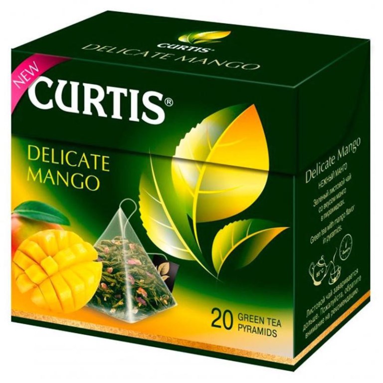 En un paquete brillante y colorido hay 20 pirámides, sin empaque individual, que simplemente se apilan una encima de la otra. La composición de la bebida es inusual: además del ingrediente principal, hay piña, sabor a mango artificial y pétalos de flores: rosa, naranja. Dentro de las pirámides hay fragmentos de hojas de té y pétalos de flores. Todo esto crea un inusual complejo exótico de sabor y aroma que gusta a adultos y niños.