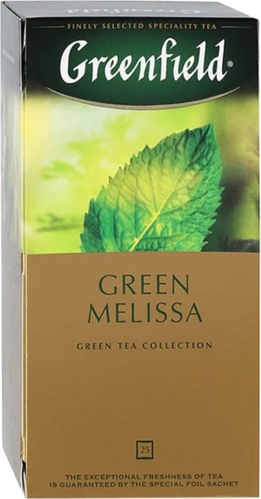 A pesar de que el nombre dice melissa, además, para darle un sabor agradable al té, se le agrega menta, así como un sabor a limón natural. La colorida caja contiene 25 sobres envueltos individualmente en su interior. El contenido de una bolsa de molienda fina, todos los fragmentos son iguales entre sí. La infusión se vuelve de color amarillo verdoso, cuanto más aguante, más oscuro será el resultado.