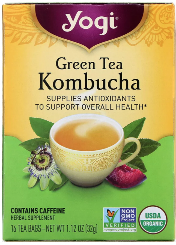 Una bebida de un productor ecológico conocido rara vez se encuentra a la venta, es mejor pedirla en el sitio web del perfil de Iherb.Lo primero que llama la atención cuando te familiarizas con el empaque es una nota sobre el contenido de cafeína. Además de este ingrediente, también hay una variedad de sustancias útiles, incluidos los antioxidantes. Además de las hojas de té, la composición incluye: limoncillo, menta, maracuyá, ciruela y kombucha. El último ingrediente es poco conocido por cualquiera, bajo la palabra inusual se esconde "kombucha", que anteriormente se cultivaba en frascos en el alféizar de la ventana. La marca se basa en el nombre del hindú Yogi Bhavan.