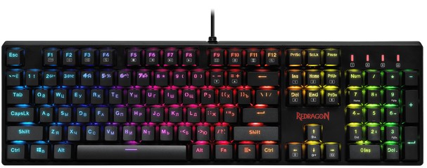 Este es un teclado con cable para jugadores de la famosa compañía Redragon. Tiene un diseño atractivo y está equipado con una exquisita iluminación RGB programable. Este teclado cuenta con un software funcional, resistencia a la humedad y una larga vida útil de las teclas.