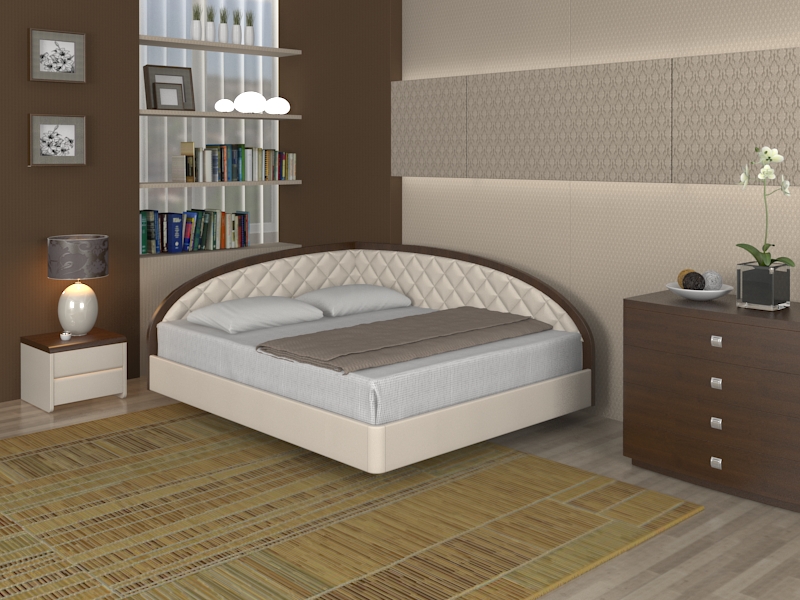 Los muebles seleccionados deben encajar armoniosamente en el diseño del dormitorio. Será necesario tener en cuenta el color de las paredes y el techo. A veces, puede comprar una cama que se destaque con su estilo en el contexto general de la habitación.