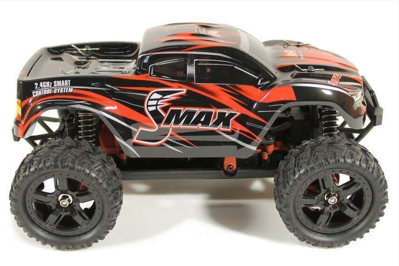 Otro camión monstruo RC de nivel profesional, este modelo está equipado con un motor electrónico y amortiguadores de aceite, tiene tracción en las cuatro ruedas y una transmisión de metal, suspensión independiente, lo que mejora la estabilidad en superficies irregulares. Todos los elementos del modelo están equipados con protección contra la humedad y son resistentes al agua y la suciedad. El Remo Hobby M-Max PRO también tiene una batería extraíble, aunque su duración de la batería dura solo 25-30 minutos y, por lo tanto, se recomienda comprar una de repuesto. Los compradores notan que algunas de las piezas de plástico del dispositivo son bastante frágiles.