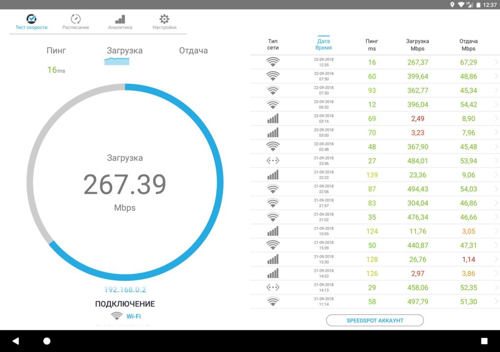 Versión en ruso de la aplicación para medir la velocidad de Internet en teléfonos inteligentes, tabletas con sistema operativo Android.Diseño simple e intuitivo de la interfaz, la capacidad de seleccionar unidades de velocidad. Tanto como: