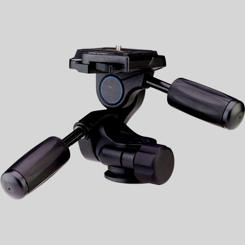 El modelo pertenece a la categoría de cabezales tipo 3D. Se nota la presencia de tres movimientos independientes: inclinación lateral de 35-90°, inclinación vertical de 35-90° y rotación horizontal de 360° utilizada para tomas panorámicas. Para el trabajo, se utilizan palancas especiales, que también se utilizan como abrazaderas auxiliares. No se proporciona una reorientación rápida de la cámara (en un solo movimiento), como en muchos otros modelos 3D. Se observa una alta precisión en el posicionamiento de la cámara.