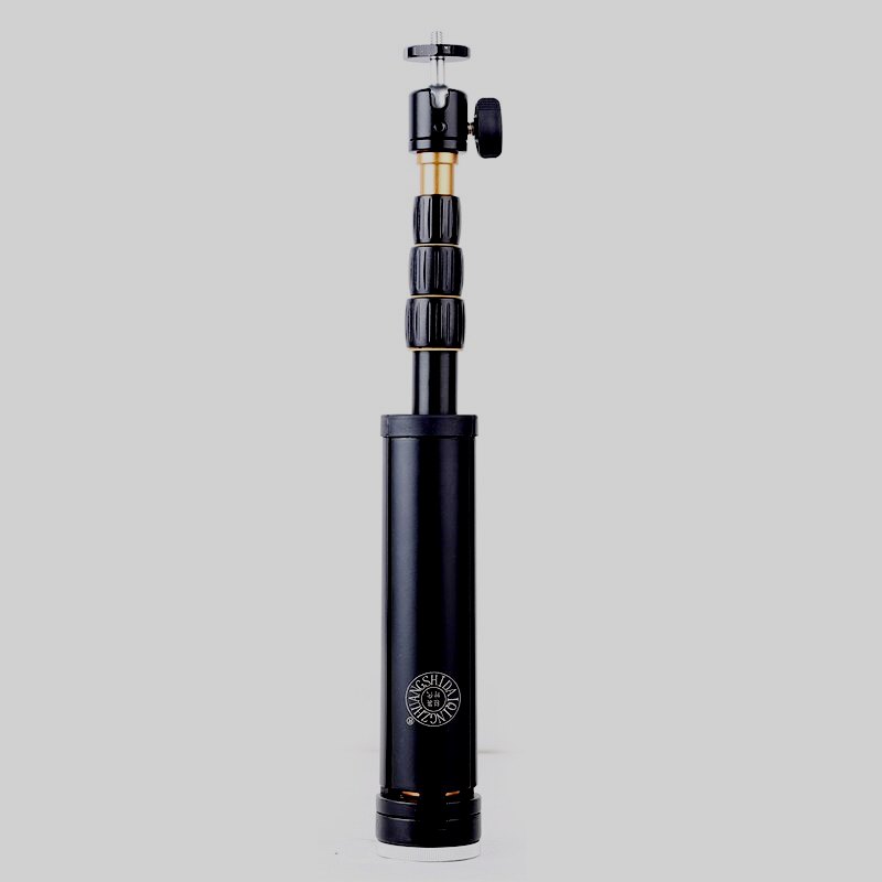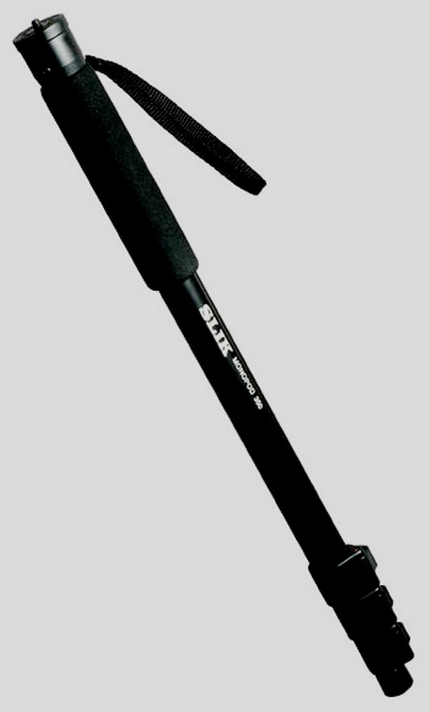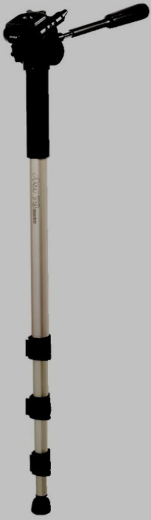 Monopod pertenece a la categoría de cuatro secciones. Fabricado en aluminio. Capaz de manejar una carga de 5 kg. Se puede ajustar a una altura de 36 a 96 centímetros. Un tornillo de ¼ de pulgada actúa como sujetador para el equipo. Las abrazaderas son de buena calidad. Equipado con mangos con recubrimientos especiales. La cabeza es esférica.Cuando está plegado, mide solo 36 cm de largo Peso: 300 g.