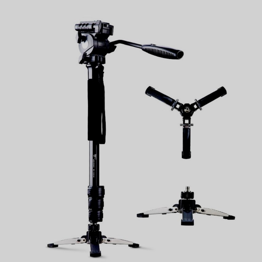 El trípode pertenece a la categoría de dispositivos universales. En comparación con un monopié, el diseño solo pierde peso y dimensiones impresionantes.Este último tipo es el que se usa a menudo para la filmación de videos en salas de conciertos, así como para la acción de reportajes rápidos. Para fijar la posición, se usa un cinturón, que se puede comprar por separado.