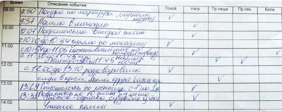 Durante el examen, el paciente llena un diario, donde ingresa información sobre el estado físico y emocional, el tiempo de sueño (incluso durante el día), comidas y medicamentos, así como cualquier estrés y cambios en el bienestar. Con este enfoque se obtienen diagnósticos complejos.
