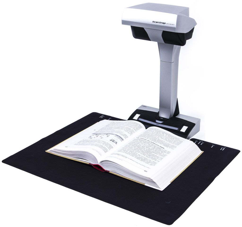 Le permite escanear libros y folletos boca arriba. Este tipo de digitalización evita daños, ya que el libro no se abre por completo y permite ver el documento.