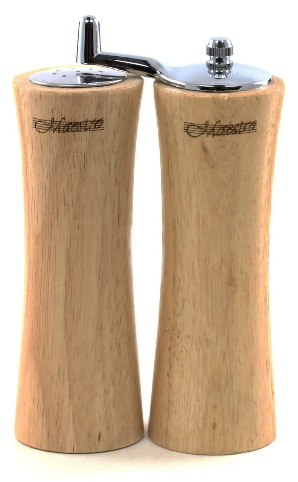 El juego de sal y pimienta está hecho de madera clara y es adecuado tanto para la cocina como para la decoración de la mesa.Los insertos metálicos especiales facilitan el proceso de mantenimiento. Con un uso prolongado, el árbol no pierde su apariencia y no absorbe olores extraños.