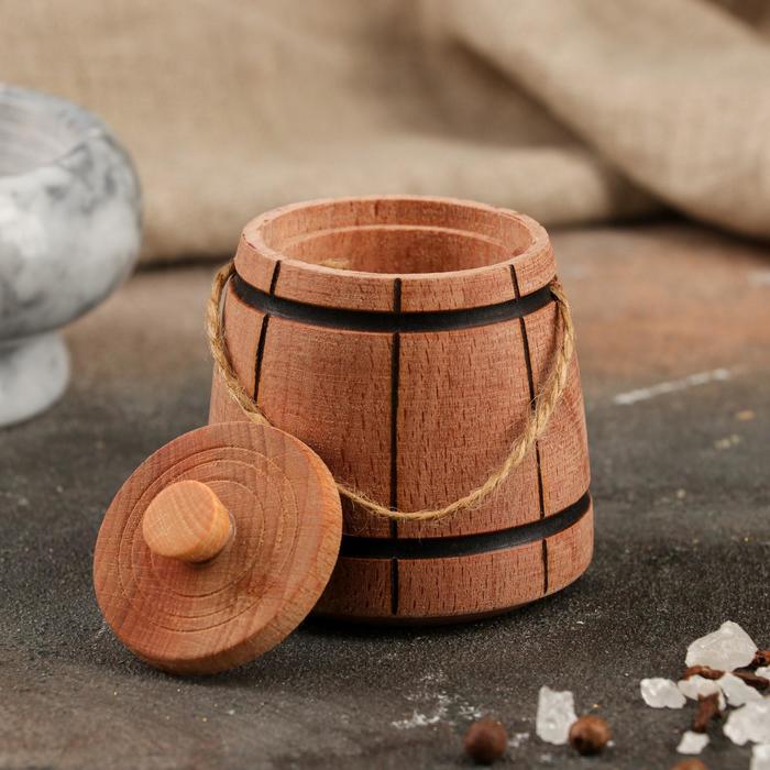 El modelo clásico de madera será el complemento perfecto para cualquier fiesta. El artículo está hecho de madera natural, por lo que no afecta el sabor de la especia y no pierde su apariencia durante mucho tiempo. La capacidad del recipiente es de 50 ml. Es necesario prestar atención a la tapa conveniente, que se cierra herméticamente y protege la sal de la humedad.
