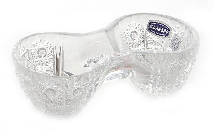 El modelo está fabricado en cristal fino, por lo que no pasará desapercibido. El recipiente doble le permite colocar tanto pimienta como sal. Crystal no se oscurece y con el cuidado adecuado durará mucho tiempo. Los cuencos son hondos, para que la sal no se despierte y no forme grumos.