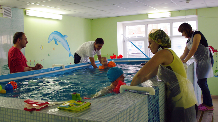 Esta instalación tiene dos piscinas. En el primero, se dedican madres con niños de 3 a 7 años, en el segundo, niños de un mes a dos. Las clases se imparten exclusivamente con un instructor.