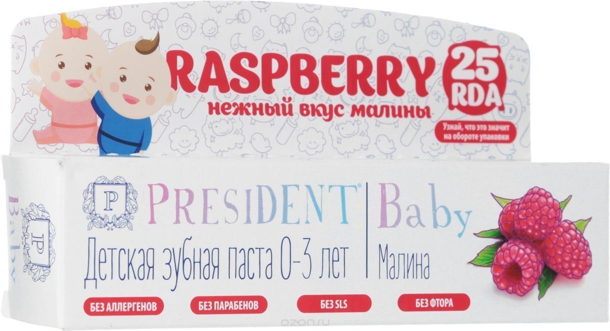 La pasta de dientes para bebés PRESIDENT se fabrica en Italia.Los componentes del producto tienen un efecto positivo en los dientes del niño. La pasta blanquea suavemente, restaura y reduce el sangrado. Diseñado para niños de 1 a 3 años. Volumen 75 ml.
