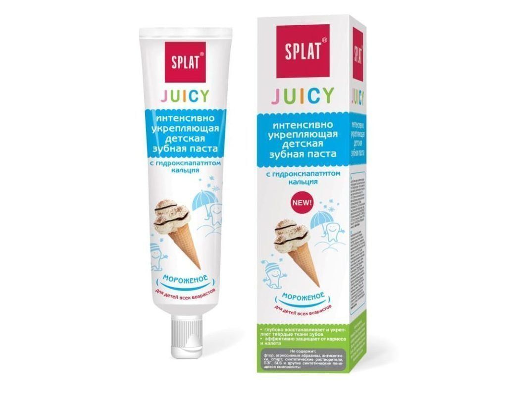 La pasta para niños menores de 4 años debe ser segura si se ingiere accidentalmente, lo que generalmente se prescribe en su empaque. Este es un factor importante, ya que la mayoría de los niños no logran enjuagarse bien la boca inmediatamente. Se permite el flúor en la composición del producto en una cantidad que no exceda las 220 pm, o ausente. El índice del grado de abrasividad de la pasta no es más de 20 RDA.