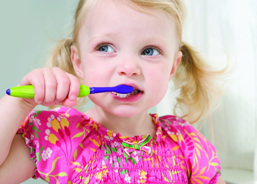 Debe cuidar los dientes de los niños, desde el momento en que aparecen. No es necesario comprar pasta de inmediato, pero cepillarse los dientes primero con un cepillo de silicona suave, y después de un año con un niño pequeño, debe hacerse dos veces al día. Aproximadamente a los dos años, debe comprar pasta de dientes.