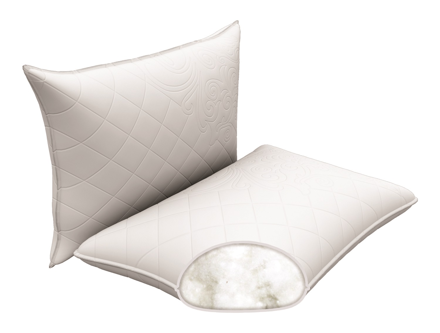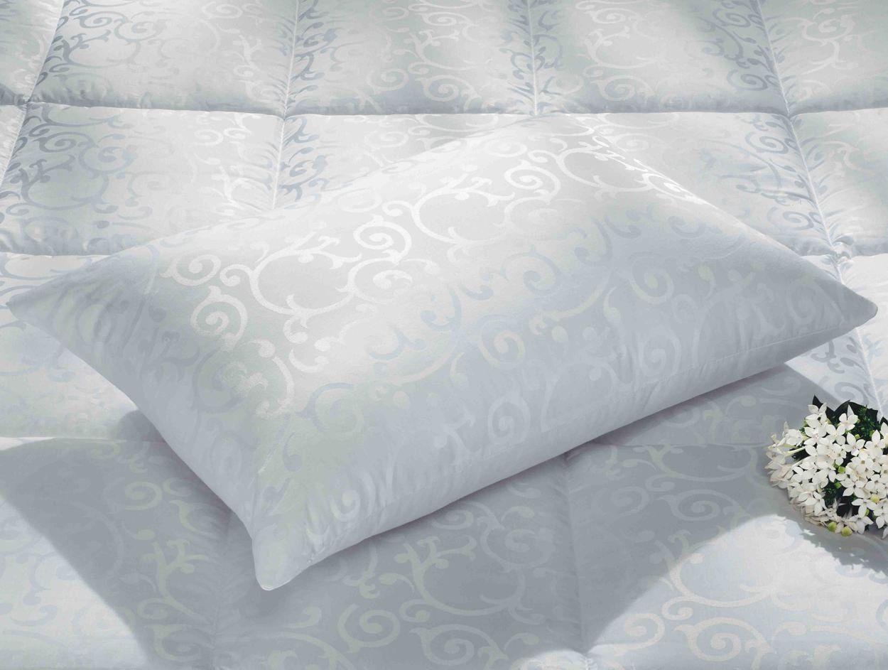 Otro representante, que en sus propiedades es similar al material natural: la pelusa. Las almohadas son bastante suaves y ligeras. Después de la aplicación, pueden restaurar fácilmente su volumen original.