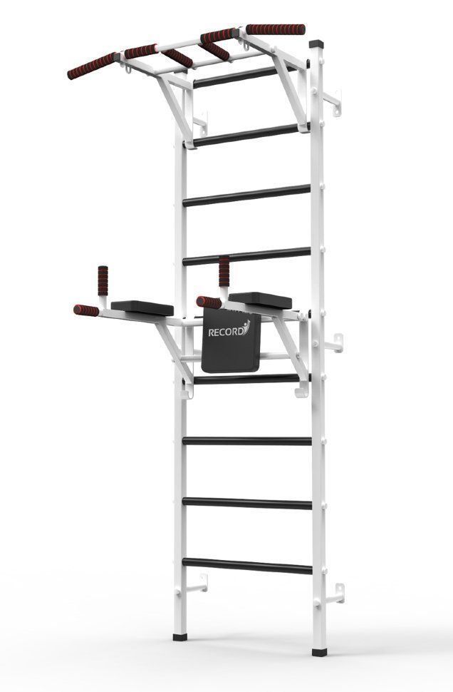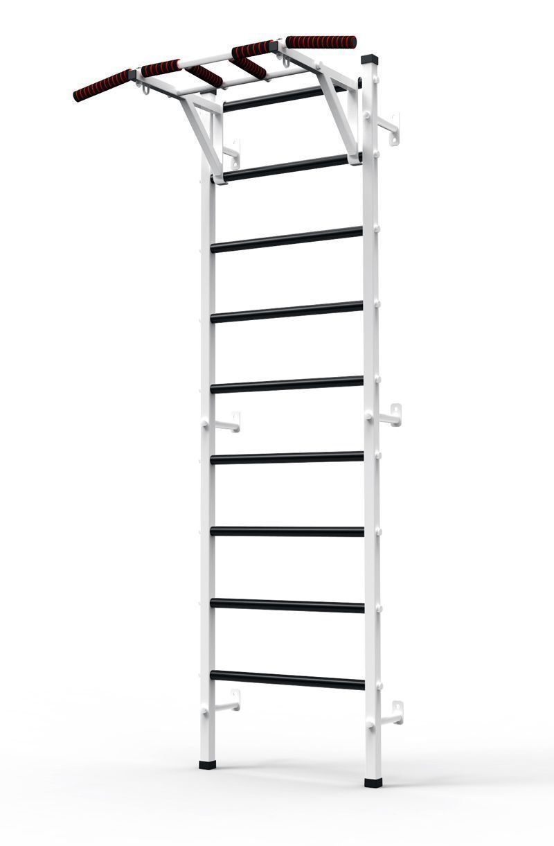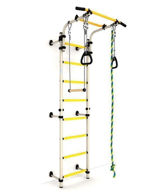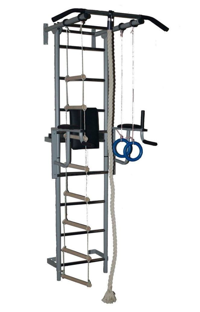 Características de diseño: el complejo deportivo está hecho de acero, la fijación a la pared se realiza en 6 puntos. Los travesaños de la pared gimnástica están revestidos de goma PVC. Carga hasta 250 kg.