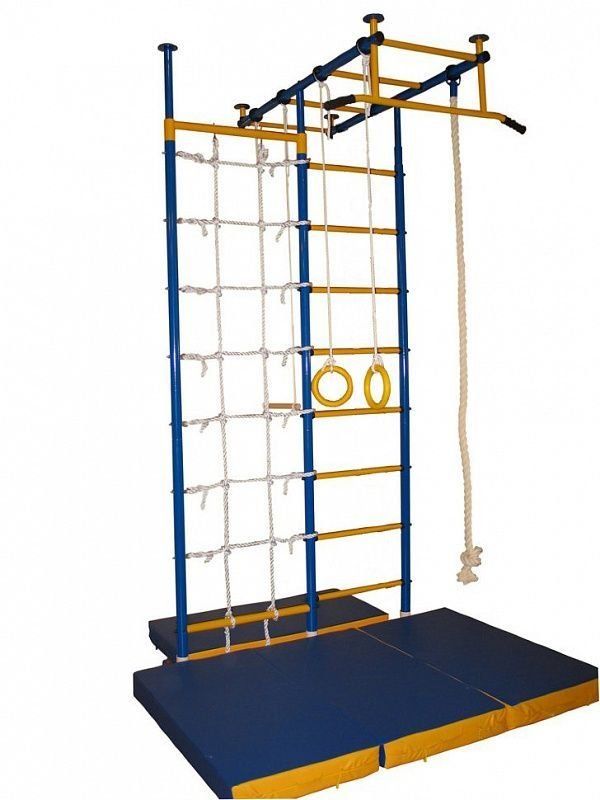 La configuración y características del proyectil dependen del modelo. Puede comprar una pared de gimnasia separada y un complejo deportivo para niños, en el que estará presente. Esta última es una opción más interesante, cautivará a un niño de cualquier edad con una variedad de opciones. Para la instalación en un apartamento, se requiere una altura de techo de más de 2 metros.