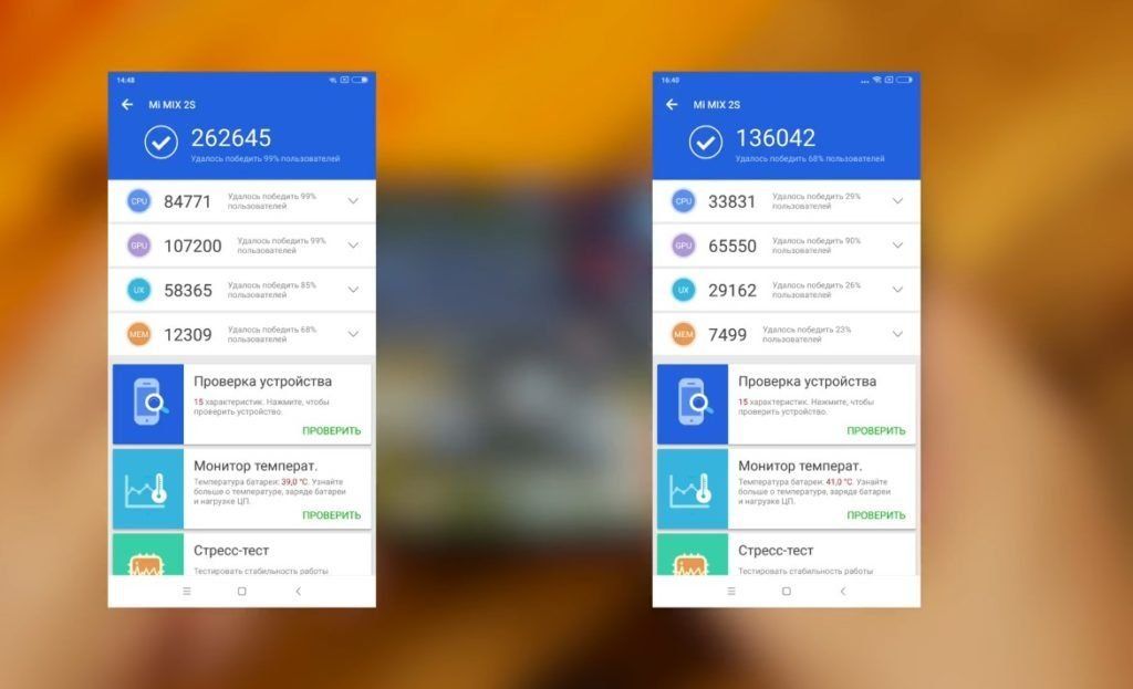 A pesar del procesador más potente en el momento en que se lanzó el teléfono inteligente, no mostró resultados sorprendentes de los existentes en el mercado. E incluso perdió ante OnePlus 5T. La optimización del firmware juega un papel importante aquí. En las próximas actualizaciones, las cosas pueden mejorar mucho.