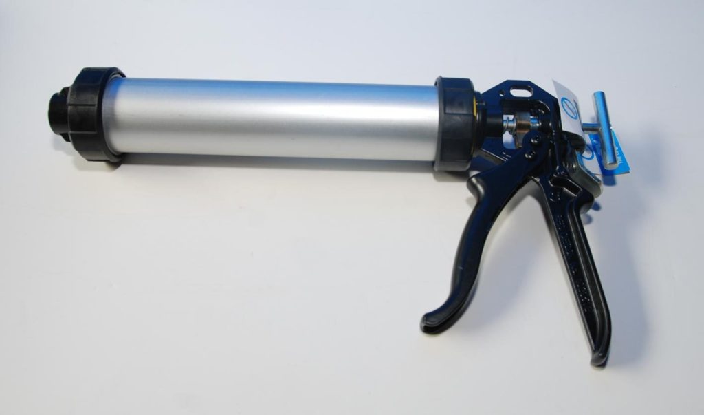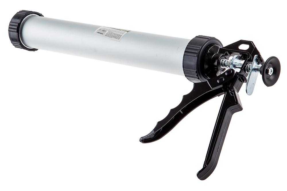Sljedeći uređaj u ovoj ocjeni je mehanički model koji ima zatvoreno kućište. Puni se kapsulama od 600 ml, a straga se nalazi poseban prekidač za podešavanje duljine drške. Pritisak se popušta laganim pritiskom palca. Korisnici uređaja hvale u recenzijama malu debljinu izljeva, što omogućuje dovod brtvila na uskim mjestima. Rastavljanje kućišta u svrhu čišćenja vrlo je jednostavno s prednje i stražnje strane.