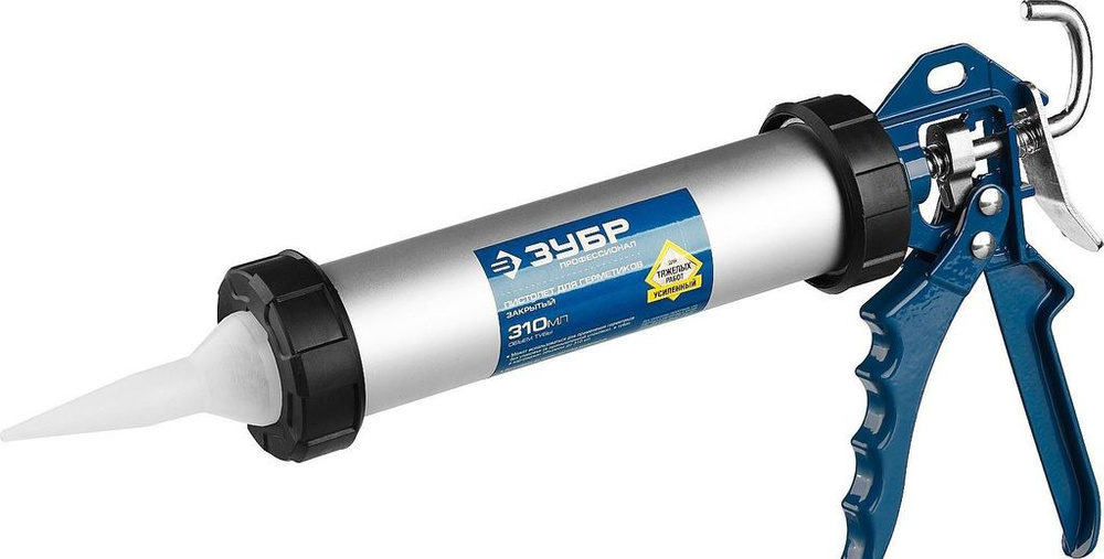 Slijedi aparat domaćeg proizvođača ZUBR. Ovo je ojačani pištolj sa zatvorenim tijelom. Proizvod ima kraći oblik, njegov kapacitet je 310 ml tvari. Kretanje šipke provodi se dodatnim brušenjem. Silikon i ostale komponente imaju premaz od cinka otporan na vlagu. Postoji posebna rupa za vješanje pištolja ili se može objesiti na kuku koja se nalazi uz glavnu osovinu. Proizvod je jednodijelni, što mu omogućuje da zadrži svoj oblik pod velikim opterećenjem.