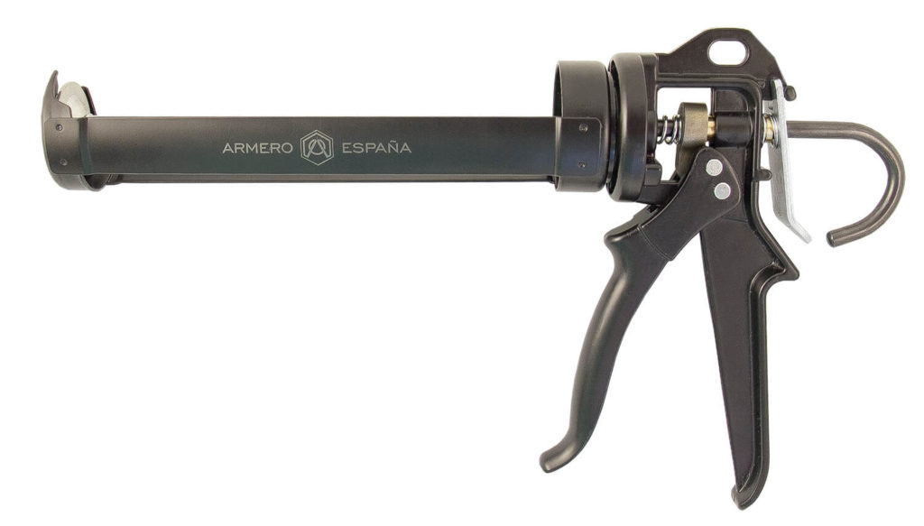 Ovaj uređaj je na drugom mjestu na ljestvici. Drži cilindre do 310 ml. Proizvod ima skeletnu strukturu. Okidač i ručka izrađeni su od aluminija. Opremljeni su posebnim izrezima. To pomaže u sprječavanju klizanja ruku tijekom rada. Na stražnjoj strani proizvoda nalazi se uređaj za smanjenje tlaka. Tu je i podešavanje dubine ulaska klipa. Prijenosni omjer mehanizma koji potiskuje stabljiku je 18/1.