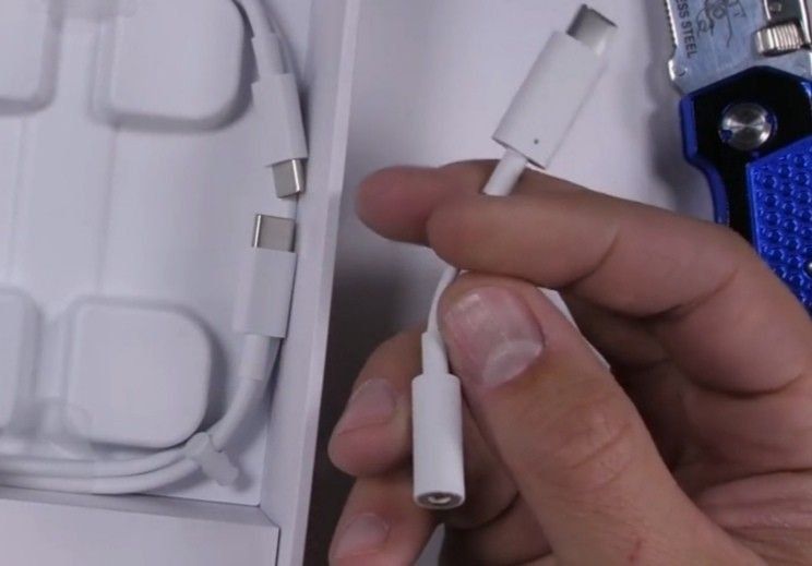 U kompletu dolazi kuverta s uputama, spajalica, punjač. Za utikač američkog tipa punjača trebat će vam adapter za prilagodbu ruskim utičnicama. Postoji usb na type-c adapter za spajanje običnih slušalica, budući da ne postoji standardni jack 3.5 jack za slušalice.
