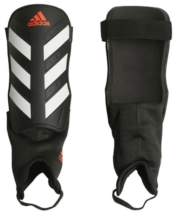 Egy jól ismert sportmárka kivehető, könnyű védőbetéteket kínál, amelyek követik a lábszár formáját. A középtalp modern EVA hab technológiával készült, mely kiváló védelmet és ütéselnyelést biztosít. A pajzs tetején és alján található két állítható hosszúságú rugalmas pánttal biztonságosan rögzíthetők a lábhoz. A fő anyag polipropilén. Három alapméret létezik: S, M, L.