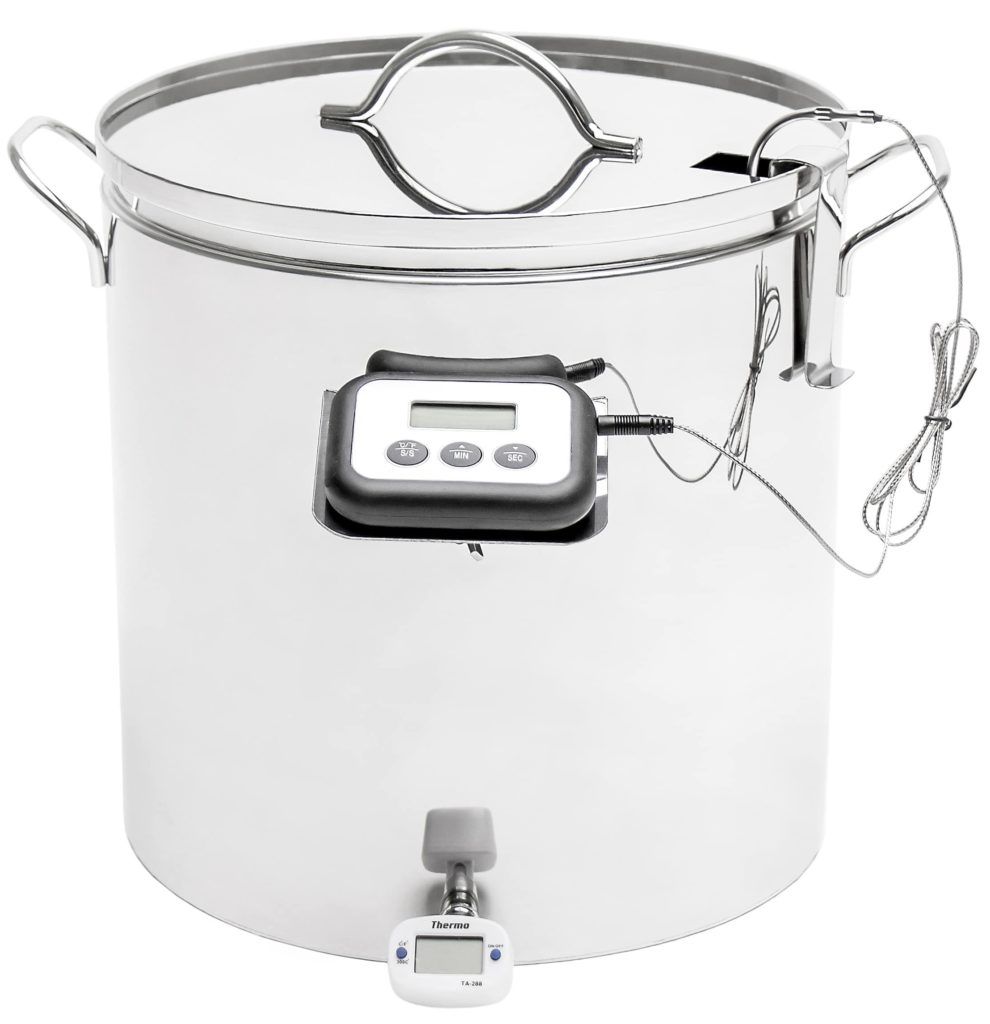 A vásárlók elmondása szerint itt két hőmérővel mérik a hőmérsékletet különösen jó minőségben. Egyidejűleg szabályozhatja a vízköpeny melegítésének mértékét, és figyelemmel kísérheti magának a terméknek a készenlétét. Elég, ha többször saját kezűleg főz sajtot ezzel a készülékkel, és a sajtkészítő kiválaszthatja az optimális módot, hogy a sajt a legfinomabb legyen. Tekintettel arra, hogy a készülék nem rendelkezik bonyolult elektronikus vezérléssel, nem nehéz megérteni a működési elveket.