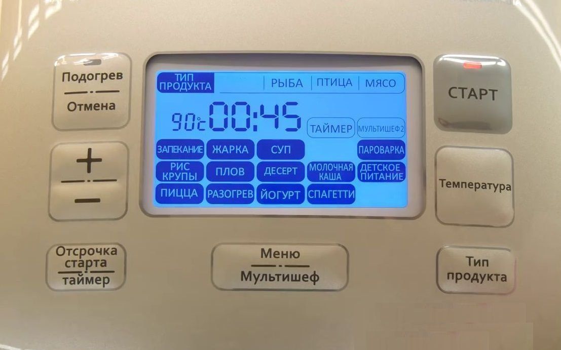 Az elektronikus vezérlés 21 üzemmód közül választhat. A főzési programok a következőket tartalmazzák: tejes zabkása, sütés, sütés, joghurt, gabonafélék, gőzölés és multicooking saját ételek elkészítésének lehetőségével.