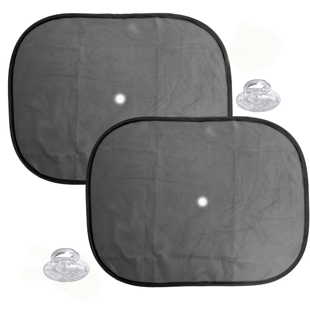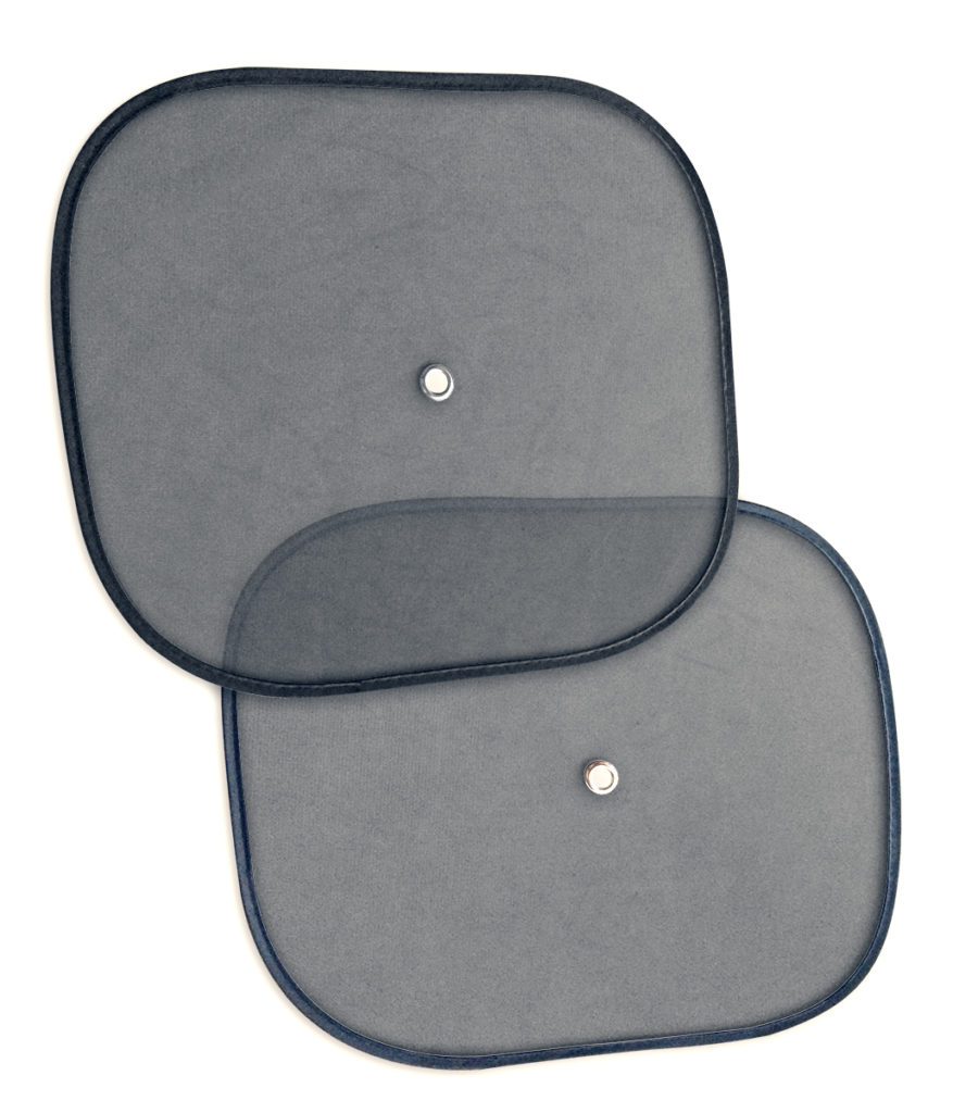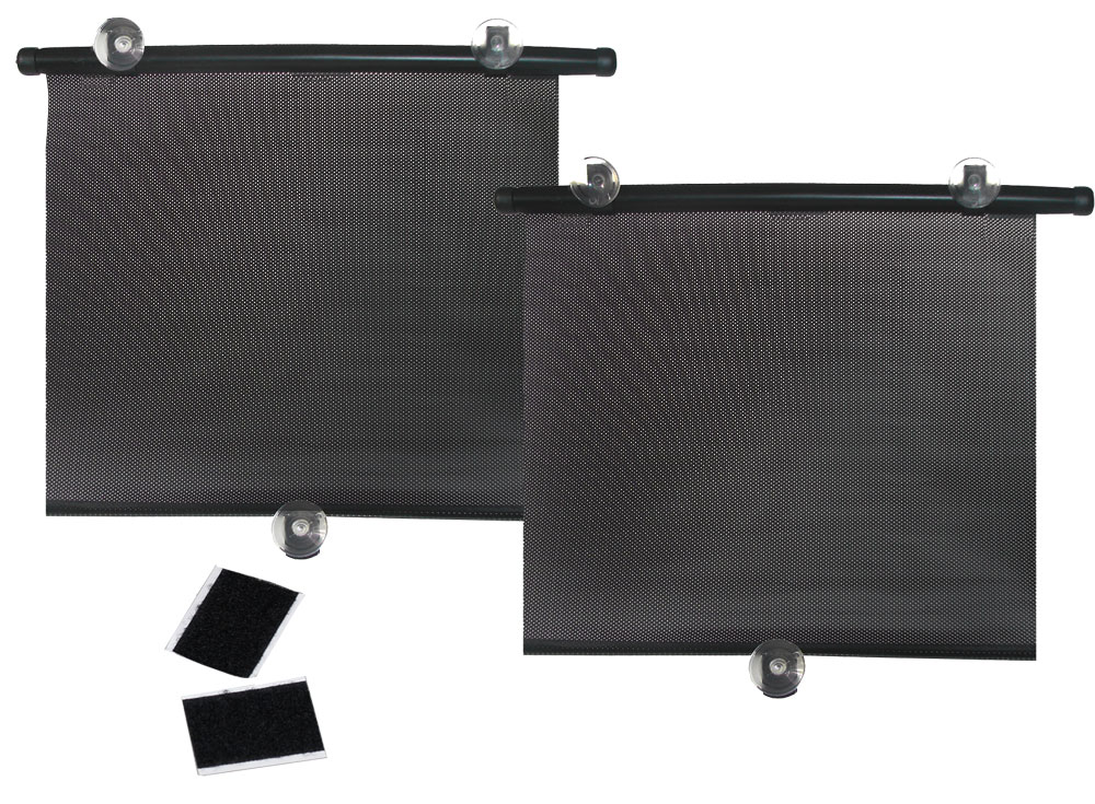 A vászon mérete 65x38 cm.Az áttetsző fekete poliészter háló nem engedi be az ultraibolya sugarakat az autóba, ezáltal megakadályozza a belső felmelegedést. A rögzítéshez tapadókorongok vannak felszerelve a termékre. Hátsó oldalablakokhoz tervezték. A készlet 2 képernyőt tartalmaz. Az ár 300 rubelen belül van.