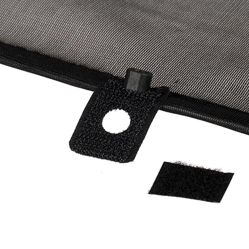 Hátsó és oldalsó ablakokra is felszerelhető. A teljes termék mérete 100x42 cm A rögzítéshez tapadókorongokat használunk, így a vászon könnyen eltávolítható és az ablakra szerelhető. A háló anyaga poliészter. Véd a napsütéstől a szalonban. A csomag két hálós vásznat és ezekhez való rögzítést tartalmaz. Ár - 800 rubel.