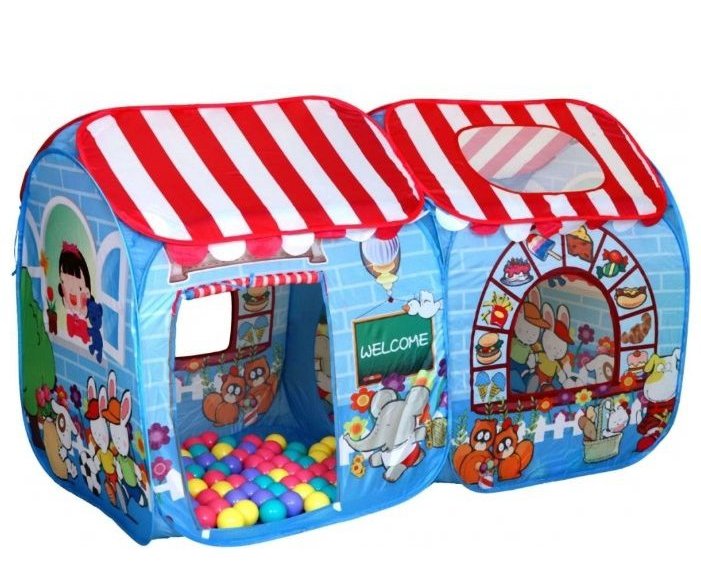 Az univerzális modell lányoknak és fiúknak egyaránt alkalmas. A sátor nagy mérete lehetővé teszi, hogy két gyermek elférjen. A modell összecsukható kialakítású, és összecsukva kevés helyet foglal el. A padló szigetelt, így a termék kisgyermekek számára is megfelelő. A sátorban puha golyók találhatók, amelyeket a szerkezet belsejében helyeznek el. A sátor fő anyaga szövet, így a szerkezet gondozása nagyon egyszerű.