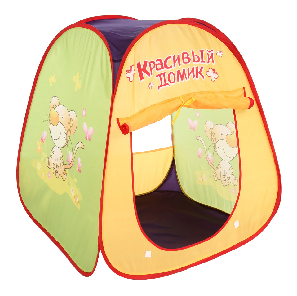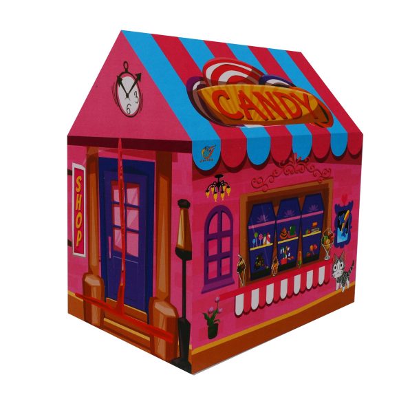 A ház formájú sátor játszóruhának is alkalmas, utcára is kivihető. Az összecsukható kialakítás lehetővé teszi, hogy a terméket speciális táskában szállítsa. A rugalmas műanyag keret gyorsan felveszi a kívánt formát. A sátor méretei nagyok, így egyszerre több gyerek is elfér.