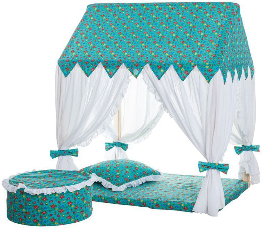 A modellt leggyakrabban lányok számára használják. Úgy néz ki, mint egy sátor, párna jár hozzá. Ezenkívül a kis hercegnőnek tetszeni fog egy kényelmes oszmán, amely ugyanolyan stílusban van díszítve, mint a sátor. Az alap egy fa keret. Ez a kialakítás hosszú ideig tart, és beltéri használatra készült. Leggyakrabban nagy méretű gyermekszobákhoz használják. A fényfüggönyök zsinórral zárhatók, a gyermek zárt teret kaphat, de szülői felügyelet alatt. Arra is figyelni kell, hogy a sátor alsó része szigetelt anyagból álljon, így télen sem fagy le a gyerek lába.
